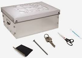 01 caixa, 01 tesoura, 01 prego, 01 lixa, 01 chave, 01 cotonete.
