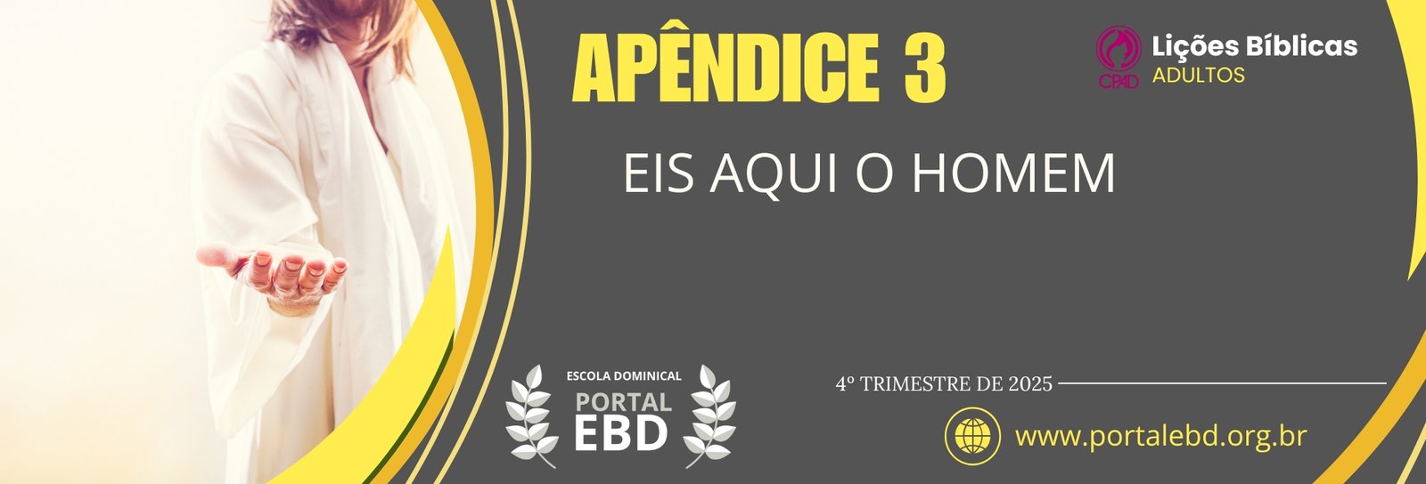 - Em apêndice ao trimestre, estudaremos a humanidade de Jesus, o exemplo de ser humano para todos nós.